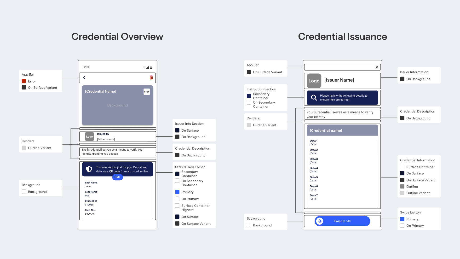 | Credential Issuance | Review screen shown before the holder accepts a new credential |